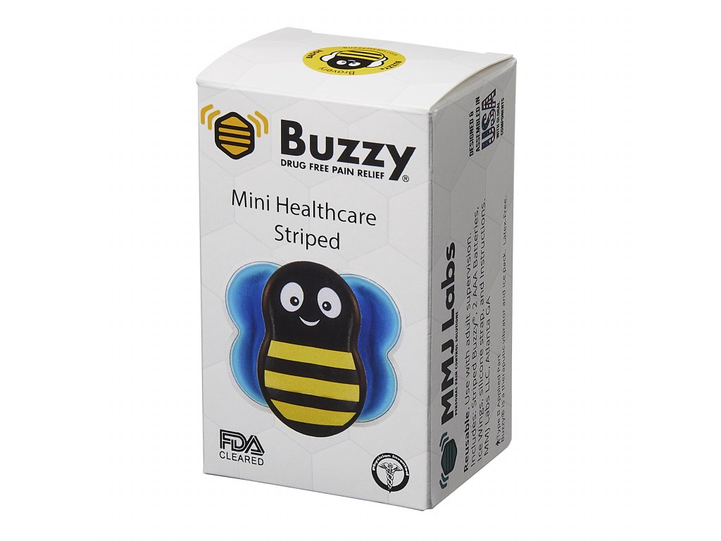 Buzzy Healthcare je vyvinut pediatrickou lékařkou (US Emergency). Schválen FDA. Opakovaně použitelný. Je určen ke zmírnění náhlé i dlouhodobější mírnější bolesti. Díky kombinaci chladu a vibrací snižuje citlivost nervů vedoucích bolestivé podněty a redukuje tak pocit bolesti. Buzzy® využívá přirozenou fyziologii vedení bolesti, tzv. VRÁTKOVOU (hradlovou) TEORII (Substantia Gelatinosa Rolandi a Descendentní inhibiční systém).