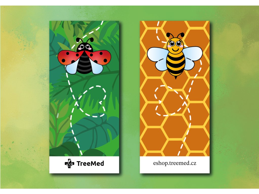 Záložka do knihy Buzzy, vzor beruška & včelka, oboustranná.